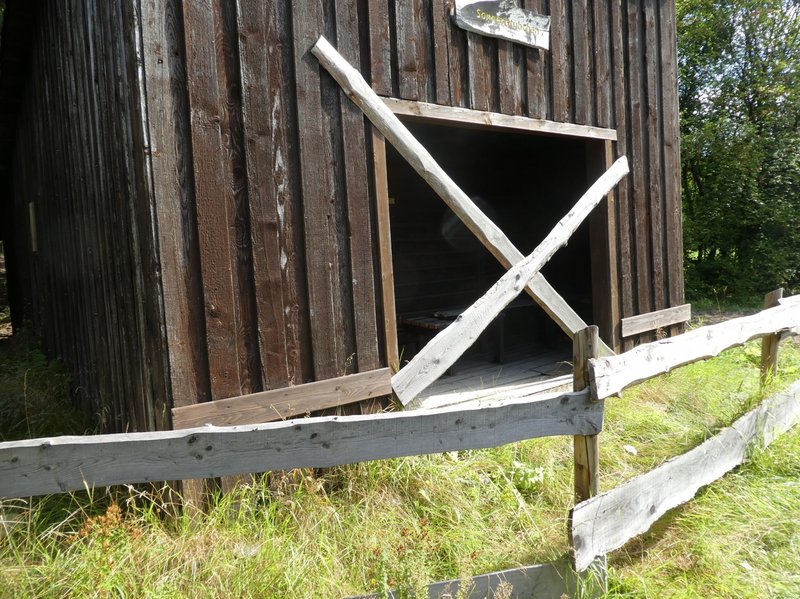 Noch immer deutet ein kleines metallenes Schildchen an einem Brett an der Ostseite der Hütte auf den ausgeschiedenen Pächter: "Harzklub Bad Harzburg, gest. v. d. Wandergruppe". Gemeint sind die zersägten Bänke die hinter der Hütte so langsam verrotten sollen. Das tun sie aber nicht, sie sind wetterfest angestrichen.