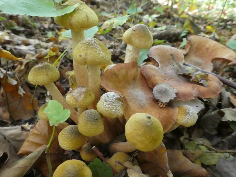 Der Tonfarben Schüppling, der sich hier zum Hallimasch gesellte, sowie alle anderen Pilze machen das genau so. Sie fruchten dort, wo ihre Sporen die besten Lebensbedingungen finden. Ob es sich nun um den Parasol, den Schwefelköpfen, den Täublingen oder um die große Familie der Tintlinge, die eben auch überall auftauchen, um andere Blätterpilze oder um die Familien der Röhrlinge handelt.
