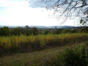 Der Weddebach begleitet uns ein Stückchen des Weges. Schwenkt, als er vom Süden kommend auf den Harly trifft in Richtung seiner Quellen, von und bei dem Kloster Grauhof / Goslar, ab. Wir laufen weiter in Richtung Osten. Immer am Waldrand entlang. Starke Äste von Eichen Buchen und Kiefern schweben über uns. Nicht lange dauert es und Felder geben den Blick frei zu den in weiter Ferne liegenden Harzbergen. Mit seiner halbrunden Mächtigkeit überragt der Brocken alle Anderen. Wie den Königsberg, den Quitschenberg, das Torfhaus zu seiner Rechten, die Zeterklippe, den Hohnekamm zu seiner Linken. Wir stoßen auf den Gedenkstein des Tier-, Heimat- und Landschaftsmalers Fritz Laube aus Vienenburg. Im Wirtshaus des Klosterkrugs Wöltingerode schmücken oder schmückten lange Zeit seine wunderbaren Bilder die Wände. Diesen Krug lassen wir jedoch erst einmal rechts liegen um am ehemaligen Forsthaus vorbei zum Bismarckstein zu kommen. Wo früher Wiesen blühten, wachsen jetzt zur Energiegewinnung Hybridpappeln. Sie verbergen hinter ihrem hohen Grün das ehemalige Kloster Wöltingerode, die Aussicht auf die Berge.